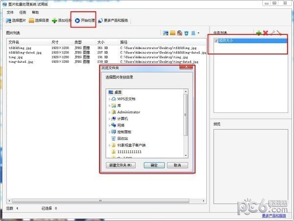 3.点击“开始处理”,选择处理后的图片存放目录,即可批量执行处理任务,任务结束后系统在该目录中生成新图片