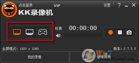 KK录像机针对不同的录制对象分为3种录制模式,准备录制前必须选择合适的录制模式。