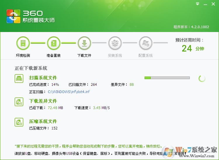 选择纯净式重装或者在保留式重装中选择完要备份的资料后,点击下一步,重装过程正式开始。