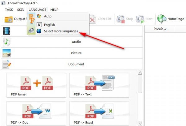 1、运行软件后,点击上方的LANGUAGE,再点击select more languages