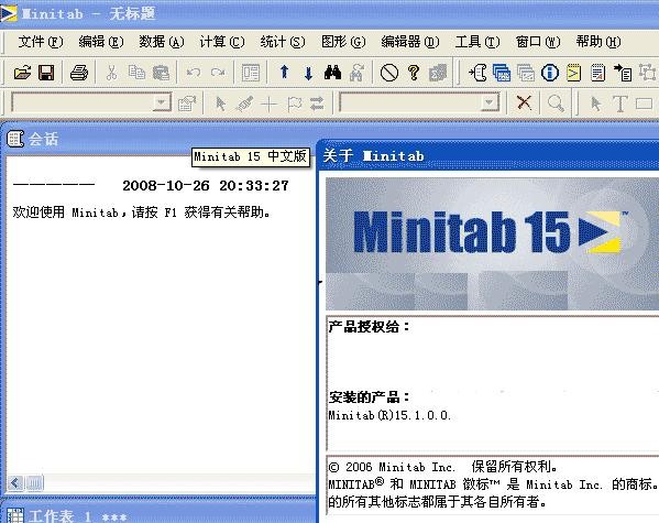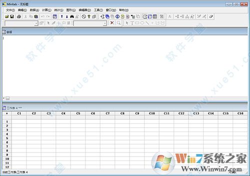 Minitab 显示两个主窗口--会话窗口和数据窗口
