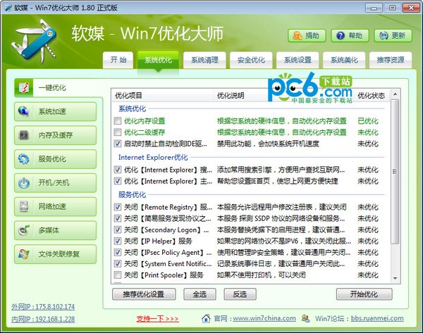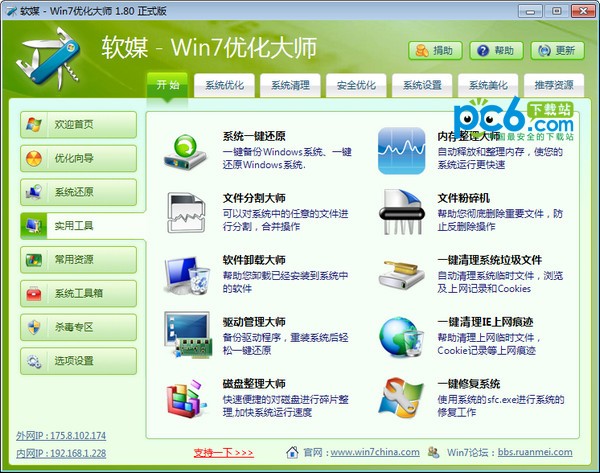 电脑卡慢再也不用担心,快试试winwin7分享的Win7优化大师绿色版!