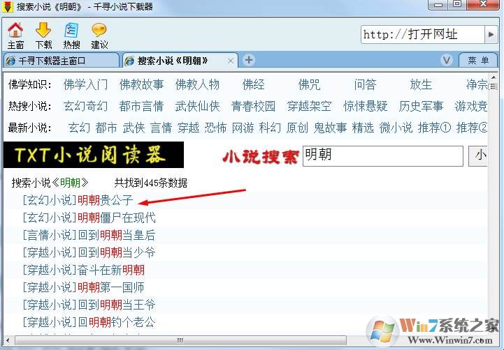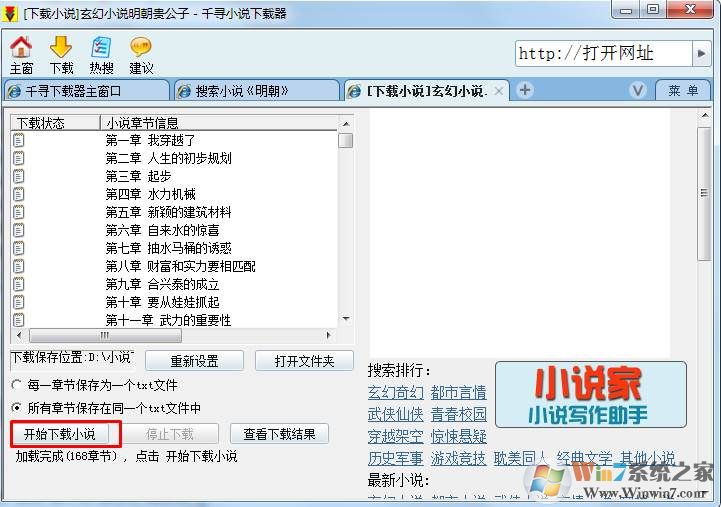 2、搜索后点击要下载的小说,然后就可以开始进入下载界面;