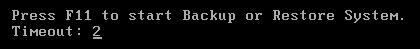 启动过程中将自动跳过3个额外菜单,直达一键备份或一键恢复警告对话框(10秒后自动执行)