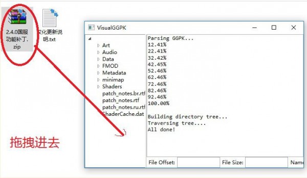 4.把补丁文件(如:2.4.0国服功能补丁) 拖拽到补丁软件左边空白处。