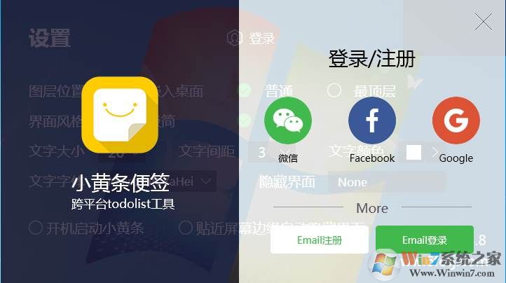 1、安装后,打开小黄条,就可以在PC上使用了。如果需要同步到手机,那么点击右上角设置,并登录