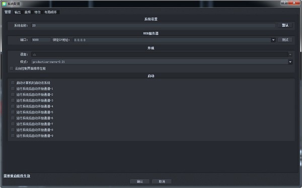 2.主菜单包括载入项目、系统配置、受控配置、全屏、受控模式、频道控制条显示等选项,如下图所示: