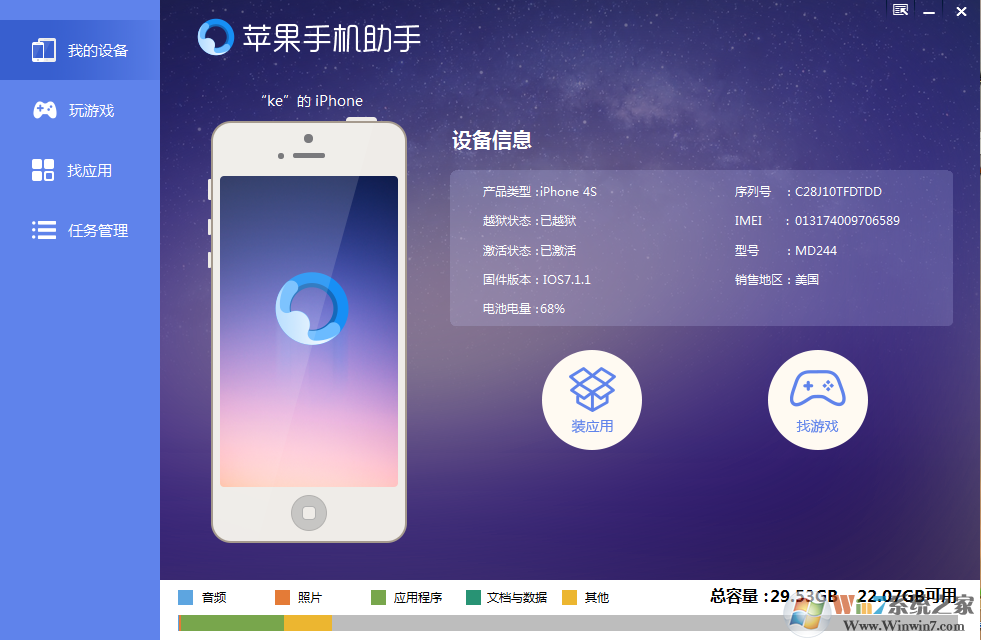苹果手机助手支持iphone、ipad等主流产品,是IOS系统平台的PC端辅助工具。能够帮助用户轻松查看到最全、最准、最详细的手机信息、带你发现最新、最炫、最好玩的游戏资源、找到最实用、最热门、最新潮的手机软件,以简单实用的功能和清新靓丽的UI打造用户心中满意的手机应用平台。