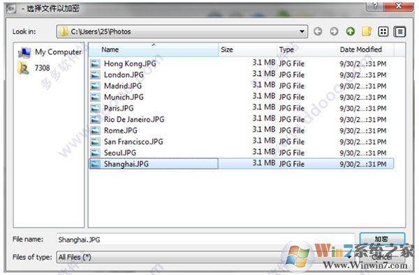 2. 选择您所要添加的文件和/或文件夹,单击加密。