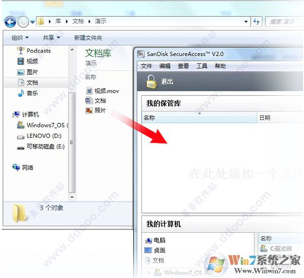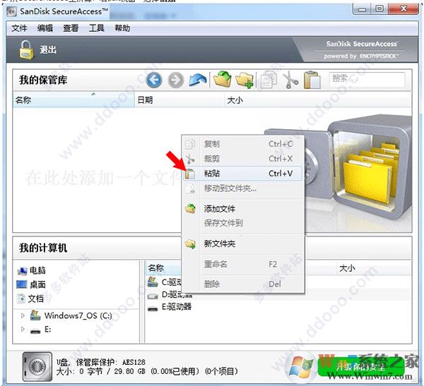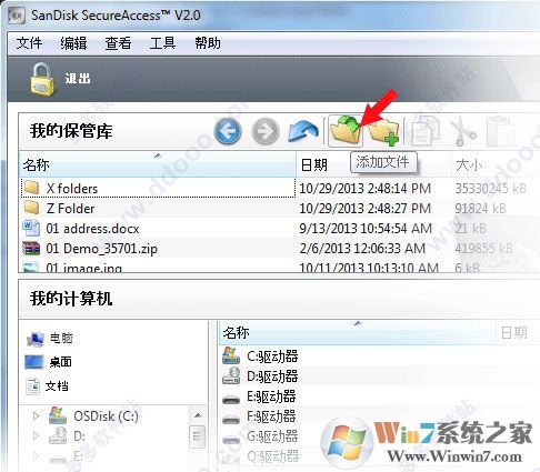 选择您所想添加的文件和/或文件夹,然后拖放文件到闪迪SecureAccess 3.0软件的主屏幕。