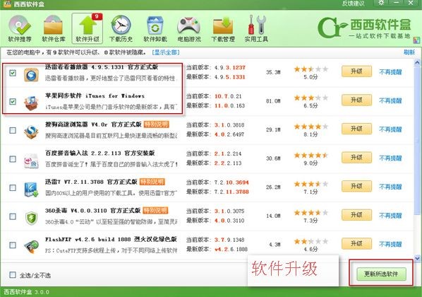 2、及时提醒用户升级更新。内置一键批量升级功能,省去手动升级的繁琐操作。