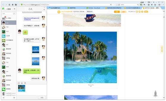 3.以上2步操作成功后就可以边浏览网页,边在电脑上使用微信聊天啦。
