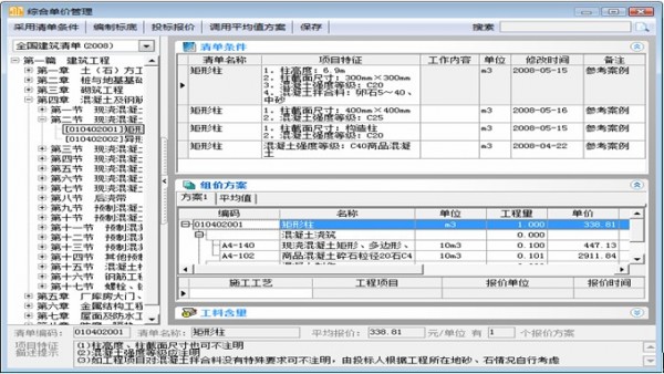 2、 快速编制招标、投标造价成果文件,包括快速编制工程量清单、招标控制价、投标报价等电子标书技术,与各地交易中心招投标系统对接,运用日常积累的“组价方案”快速套价: