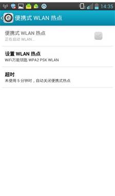 (5)点击便携式WLAN热点选项,将其打开,用电脑搜寻并连接手机热点