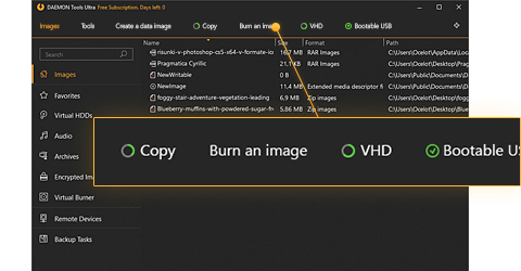 DAEMON Tools Ultra是一个强大的虚拟CD-ROM工具。可以创建引导的USB闪存以进行操作系统的复原,使用RAM磁盘以增强你的PC运作性能和使用独特的iSCSI介面已允许连接至远程USB设备,可以帮助您快速加载ISO和其他图像文件,是有史以来最强大最先进的映像制作软件。
