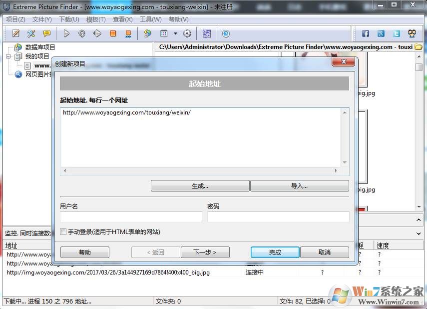 1、打开软件,点击,项目—新建项目,然后输入你要下载网站的地址;