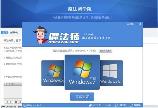魔法猪一键重装系统是一款用来帮助用户快速系统重装的工具,使用该如软件就算你啥也不懂都可以重装系统。操作简单,我们打开魔法猪一键重装系统只需选择一键装机,选择需要重装的系统,设置一下需要备份的文件资料,就可以开始自动下载系统并进行重装了!