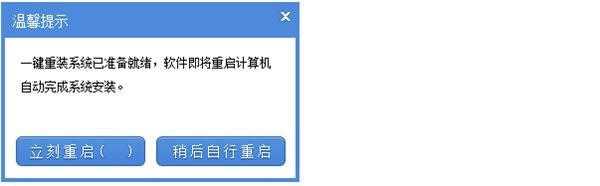 4.待系统下载完毕后,就可以进行Win7系统一键安装过程了。在一键安装Win7系统之前,会出现一个提示框,提醒您软件即将重启计算机自动完成系统安装,您只需点击立刻重启即可。