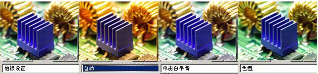 下面样图在拍摄时采用了特殊光源照明,已经使用“手动白平衡”确定准确的色彩。所以在白平衡选择标签中的“拍摄设置”即不加任何处理的情况下色彩就保证了准确。再看看“自动”的情况下,在特殊光源下,自动白平衡往往也是不可靠的。“色温”虽然可以在 2800K - 10000K 中大范围调整,但也并不一定能得到准确色彩,因为除了色温不同外,还有色调也受光源影响,需要在“调谐”功能微调。“单击白平衡”是一个后期“手动白平衡”功能。假如你的照片中含有白色或灰色的(单色)物体,可以选择“单击”功能,用试管点击单色区域(不是过曝的地方),让软件自动获得白平衡设置。这个与相机中的手动白平衡相同,但区别一个是拍摄前在相机里处理,一个是在拍摄后在软件中处理,随机内软件与后期软件的不同设计,效果也可能存在区别。