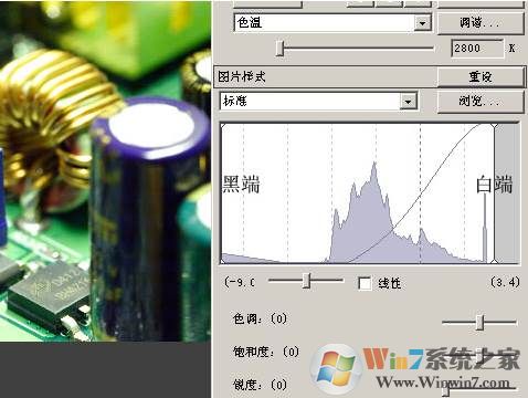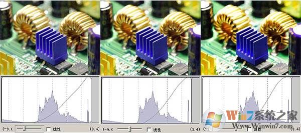 直方图下还有一个拉杆,这里是调整照片处理时的曲线状态。人的眼睛对光的感应不是线性的,若选择“线性”后,照片将不同人眼看到的效果。适当调整曲线,可以在反差、色彩饱各度上有所变化,近似 PHOTOSHOP 中的“曲线”功能。同样,喜欢简单直接出片的朋友,可以略作调整,取得自己想要的效果,而需要二次处理的高要求用户不建议在这里太多调整。