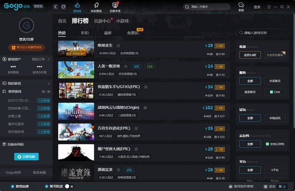 Gogo游戏平台是一款转为游戏玩家定制的游戏折扣平台,在这里购买超划算的正版游戏!它提供了3A大作试玩、购买特惠折扣、游戏回收、免费动态壁纸,游戏网络环境加速等综合服务的应用,如果你想以比较优惠的价格购买游戏,那么Gogo游戏是不错的选择。