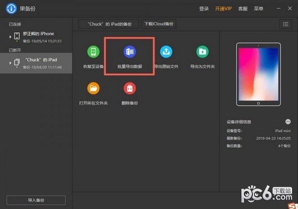 A:使用果备份将数据备份完成之后,点击【批量导出数据】按钮;