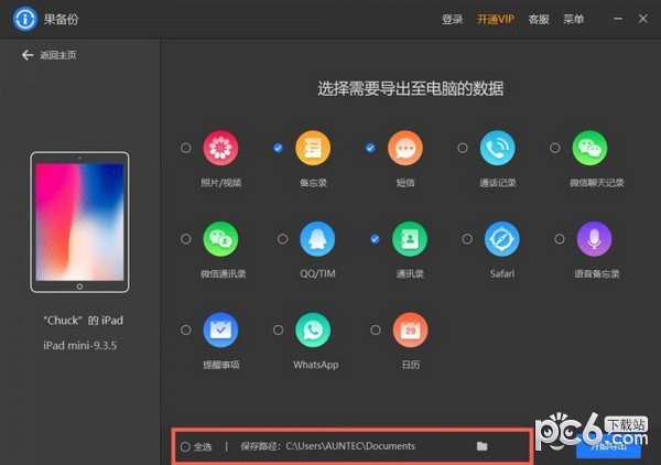 选择想要导出的数据类型,选择保存路径,点击【开始导出】就可以完成批量导出啦。