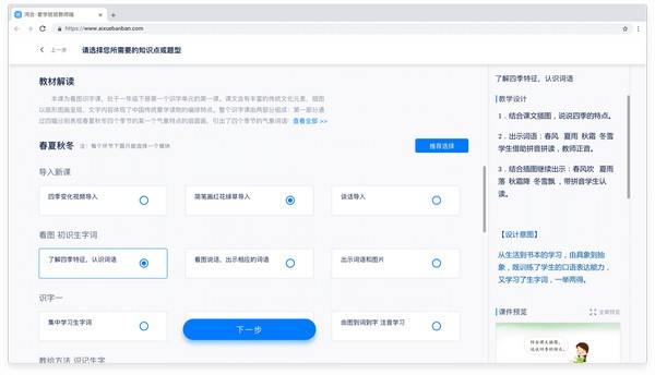 1、智能备课,三步生成好课件