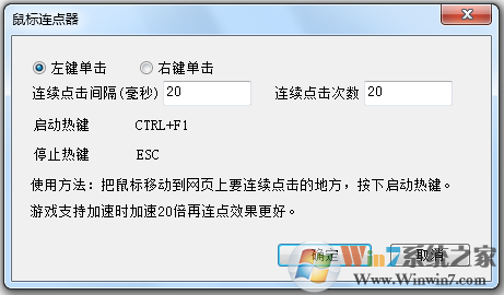 鼠标连点器,我们支持左键连点和右键连点,执行设置好点击间隔和点击次数。然后将鼠标移动至需要连点的地方启动热键即可。部分游戏开启加速20倍时连点效果会更好。