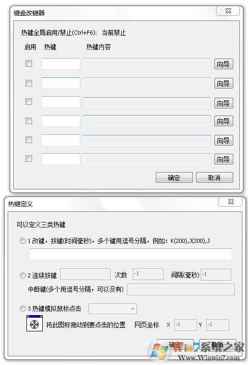 键盘改建器目前支持三类热键,即改键(多重改建,即按1个键点击多个键),连续按键以及模拟鼠标点击。具体使用方法按向导里面的描述操作即可。