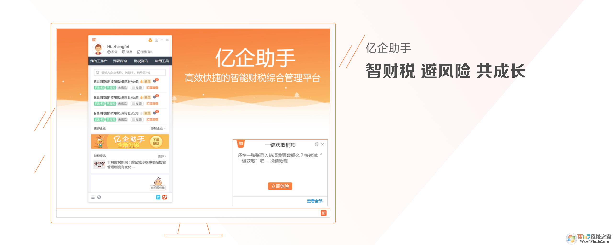 亿企助手是由税友软件集团股份有限公司旗下,亿企赢网络科技有限公司开发的一款财税资讯类软件。是一款面向企业财税会计提供推荐辅助办公服务的PC客户端产品,针对性地为财税人员提供财税领域最新最热最实用的财税资讯、税务通知、财务学习、培训课程等众多内容,按照用户意愿推送,并实现深度个性化定制,帮助用户更加方便、快捷地获取最匹配的服务资源与市场机会,实现平台参与各方的成长共赢。