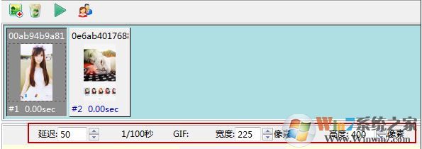 添加完毕后,设置每帧的延迟时间和动图的宽高比。