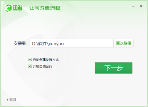 2、这里建议将迅游网游加速器安装在D盘,点击“下一步”继续;