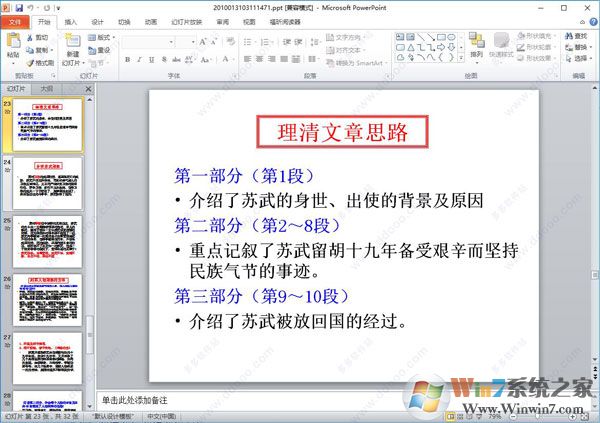 苏武传PPT课件是一个专门针对本篇课文所设计打造的教学模板,该课件主要对苏武传文章脉络进行了详细概述,结构清晰,知识点总结到位,用户能够通过本模板更全面的理解本文的意思,理解作者的想要表达的感情,熟练的知道翻译意思,掌握重点生词,从而加深记忆,老师份幻灯片的形式讲课效果更好!