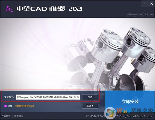 2、双击“ZWCAD_MECHANICAL_2021_CHS.exe”文件,开始安装,选择安装路径;
