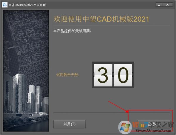 5、当我们运行软件时会提示试用30天,这里直接点击激活;