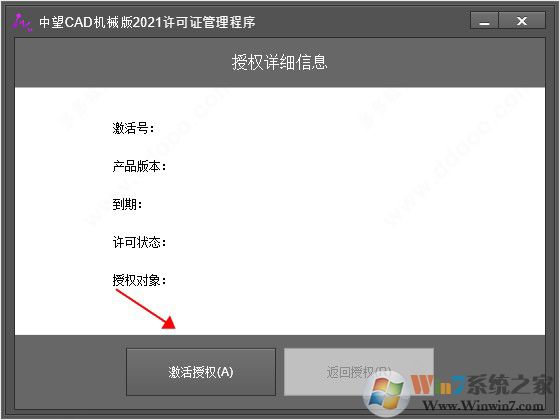 6、进入许可管理器程序,目前还是空白,这里点击激活授权;