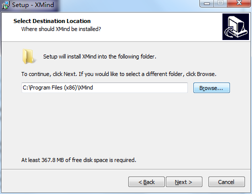 3、选择xmind安装位置,软件默认安装路径是c盘,点击browse(浏览)自定义软件安装位置,然后单击next;