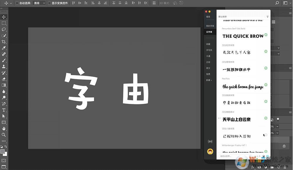 下载安装后,就可以使用了。这款字体管理软件,支持很多软件,包括专业的PS、AI、Indesign、Coreldraw、Sketch、Word、PowerPoint等,这些软件都可以直接使用字由里面的字体。