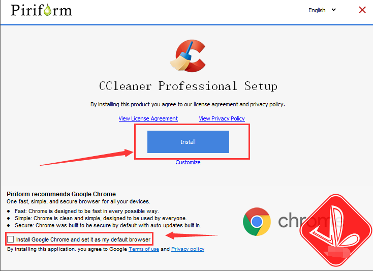 1、打开软件进行安装,在安装时注意下载有个广告(下载谷歌浏览器并设为默认浏览器),记得把这个勾去掉