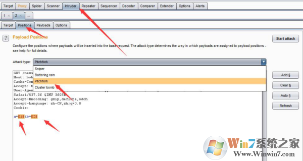 之后也会出现Intruder变黄色。还是跟重放一样,进去爆破功能模块。
