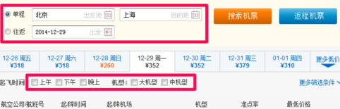 3、点击盛名时刻表上面的机票查询我们同样的可以根据需要查询购买机票,很方便实用。