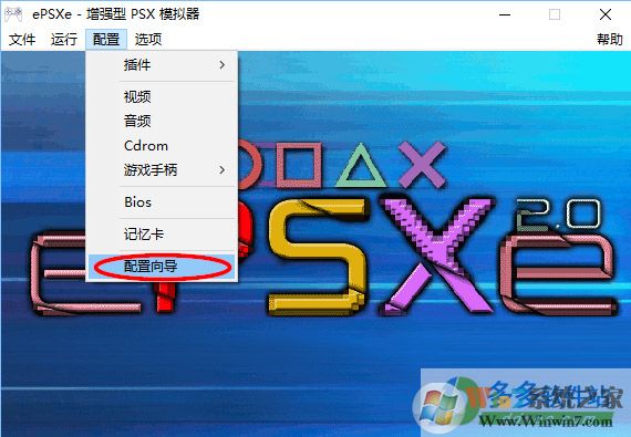 1、由于ePSXe模拟器采用插件运行模式,所以你要运行游戏必需要设置好插件,一般第一次运行软件会自动提示配置向导,当然,你也可以进入软件界面之后,点击“配置”—“配置向导“来操作