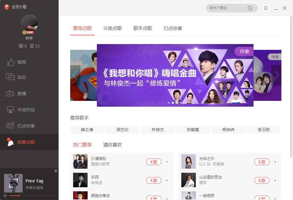 在极光下载好全民K歌电脑版后直接运行,一键快速安装就好了,就有以下界面