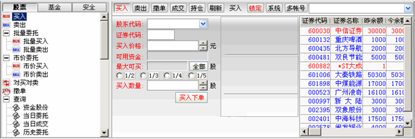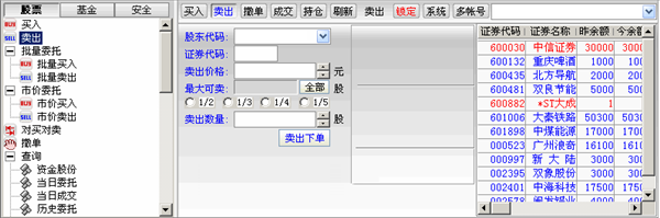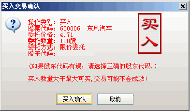在填写完证券代码之后,证券名称会显现,当确认输入无误之后,点击下单会出现确认信息。也可在右侧列表中双击自动填写各项。