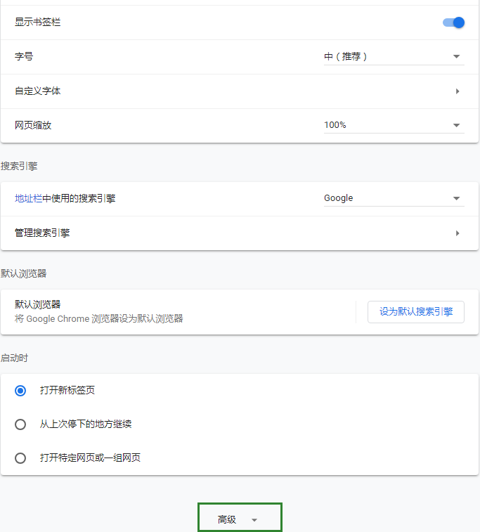 在页面底部单击高级。