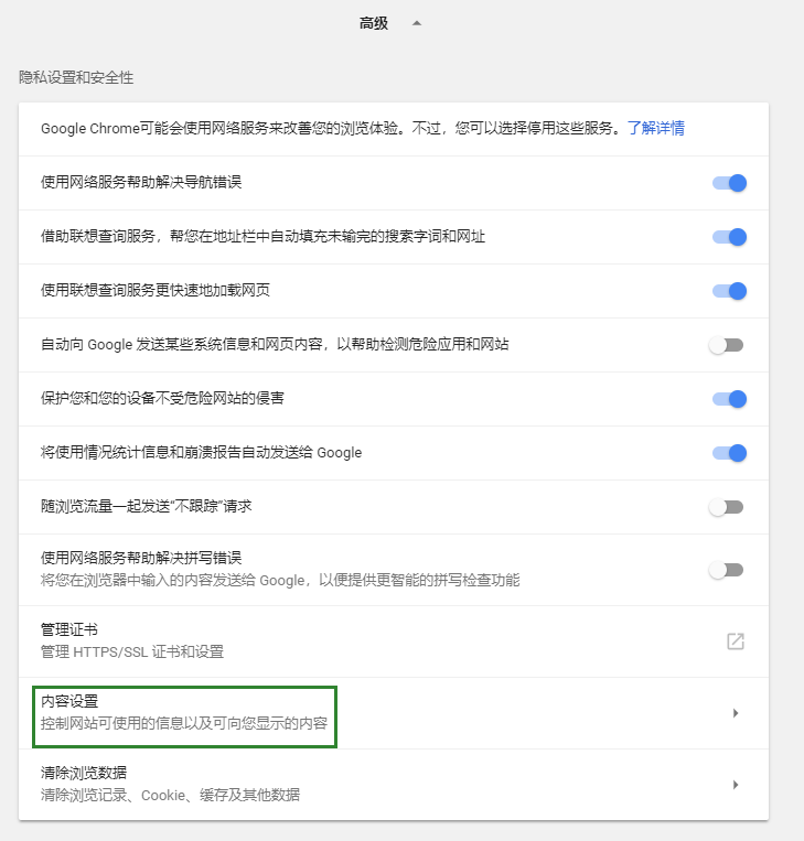 在展开的页面中单击内容设置。