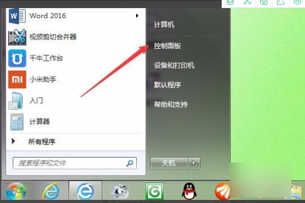 首先我们打开电脑桌面,点击左下角的开始按钮,在弹出菜单中选择“控制面板”菜单项。
