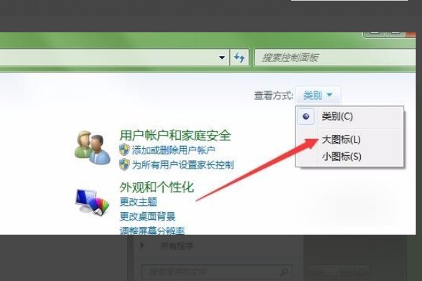 在打开的控制面板窗口,点击右上角查看方式选择“大图标”菜单项。
