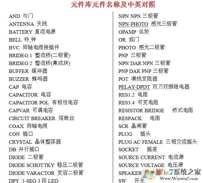 Proteus元件库汉化版对照表